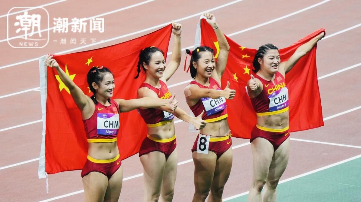 女子4*100米斩获金牌 潮新闻 记者 李翔 摄
