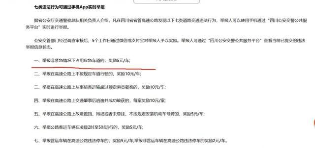 四川高速举报占用应急车道只有5元奖励。四川省人民政府官网