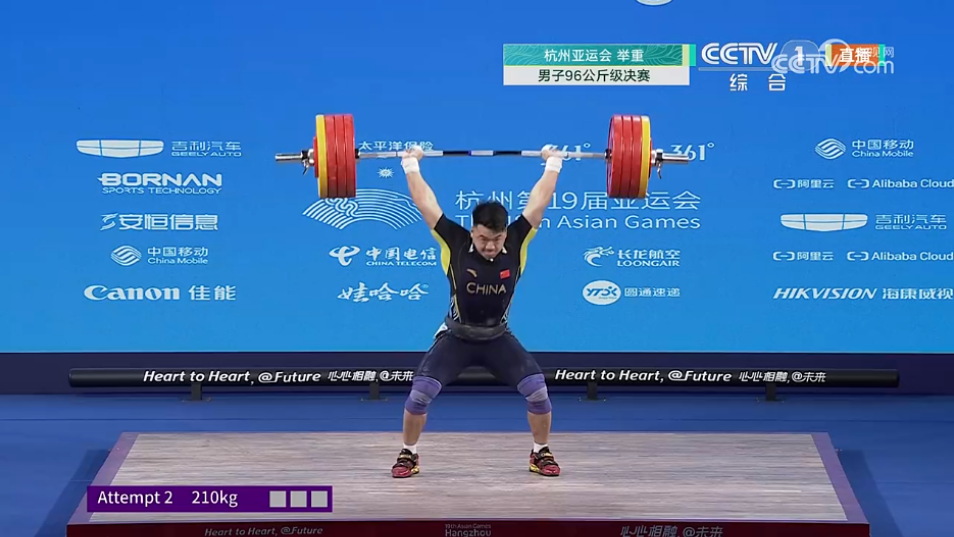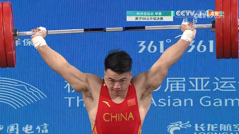 10月5日,杭州第19届亚运会举重男子96公斤级比赛,中国选手田涛夺得金牌。