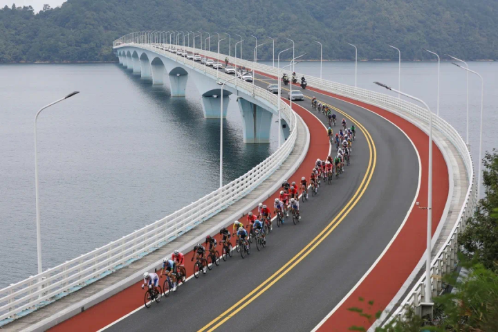 当60辆公路自行车,在千岛湖畔207.7公里的环湖赛道上逶迤争先,风驰电掣的身影穿行在绿水青山间,也串起了淳安沿途14个乡镇的湖光山色;