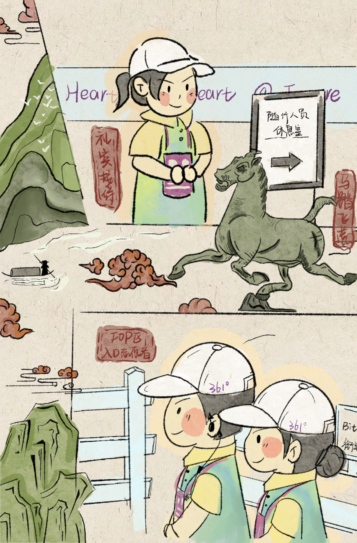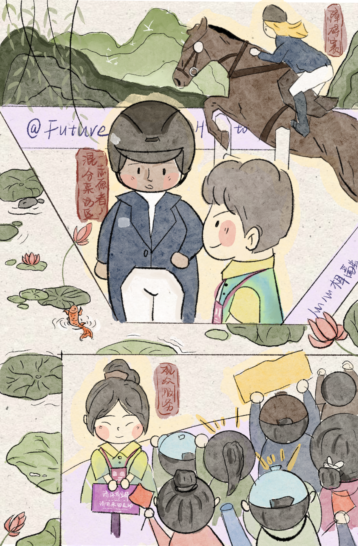 杭州亚运会马术项目落下帷幕。今天,在杭州桐庐亚运分村,临别之际,浙江工商大学杭州商学院的亚运“小青荷”高铭,用四天时间,以Q版漫画的形式,为一同默默服务的“小青荷”们送上了一份特别的礼物。