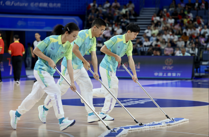 比如,几天前,“擦地哥”在网络上走红,来自中国计量大学的22级本科生李冠霖就是其中一名“擦地哥”,本次亚运会在杭州奥体中心体育馆担任竞赛区场地清洁志愿者的小组长。“擦地哥”的工作内容就是要保证比赛的地板上没有杂物,没有汗渍水渍,以保证比赛顺利进行。