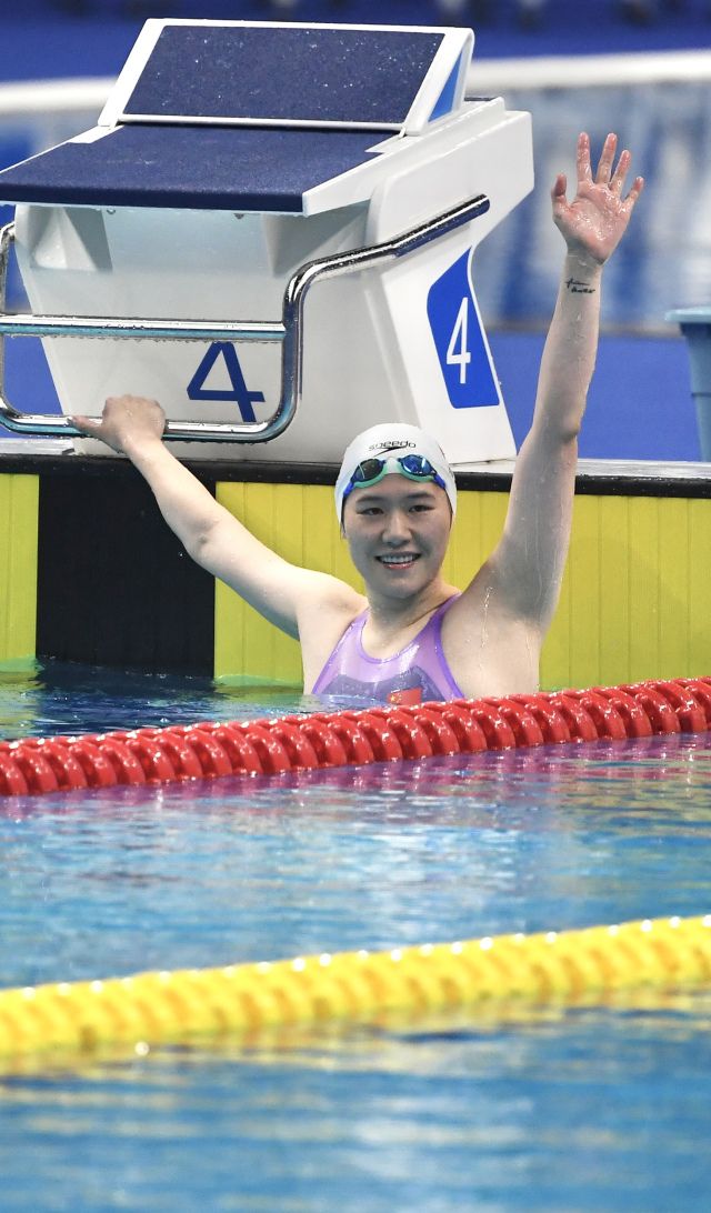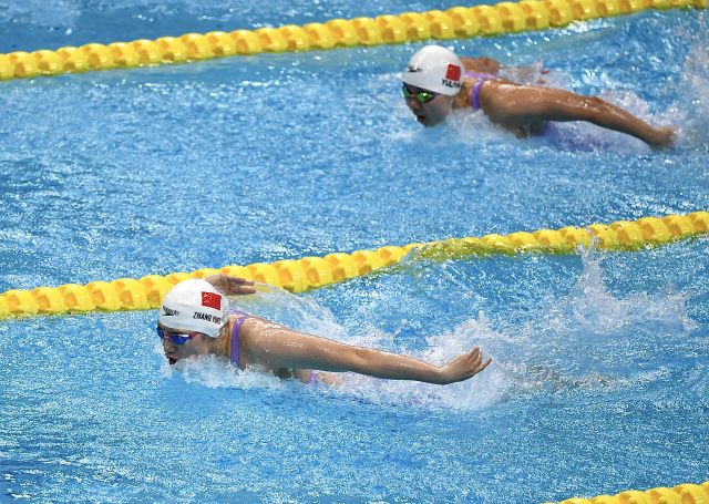 9月24日,张雨霏打破亚洲女子200米蝶泳纪录,拿下中国游泳队杭州亚运会首金。记者 王川 摄