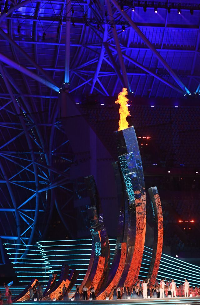9月23日,杭州第19届亚运会开幕式举行。 这是拍摄的主火炬。新华社记者 黄宗治 摄