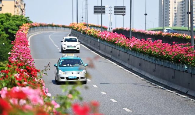 高架月季空中花廊一直是杭城靓丽风景线。9月下旬,杭州迎来全城月季盛开,迎接亚运盛会。 记者 张之冰 摄