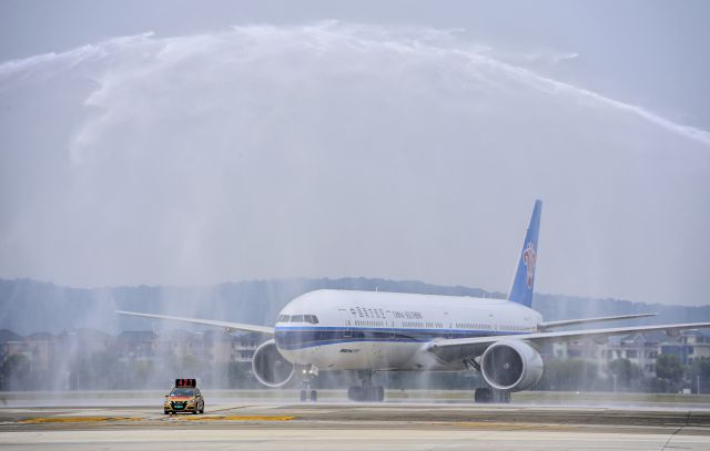 2022年9月22日,杭州萧山国际机场三期项目正式投入运营。图为当日杭州机场以民航界最高礼遇“过水门”仪式迎接首个进港航班。记者 张之冰 摄