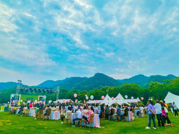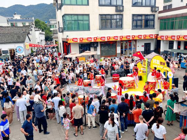 “十一”期间,在村中心的共富广场,当地招募了包括文创、美食、手作在内的50多个创客摊位,共富市集、共富村晚、婺剧专场、趣味运动会等活动在8天假期轮番上演。村庄总客流量超11万人次,经营收入达300万元,是去年同期客流量的十余倍。为了应对客流,村里利用闲置土地,开辟了临时停车场,新增的200个停车位免费对外开放。