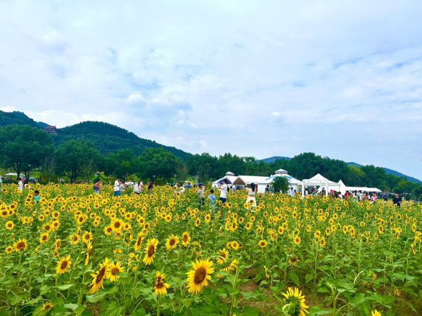 十一期间,李祖村向日葵花海游人如织。李祖村供图
