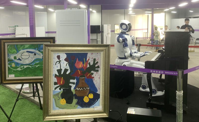 分级等候的机器人正在弹琴 记者 杨烁 摄