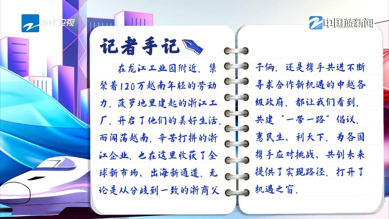 在龙江工业园附近,集聚着120万越南年轻的劳动力,菠萝地里建起的浙江工厂,开启了他们的美好生活。而闯荡越南,辛苦打拼的浙江企业,也在这里收获了全球新市场、出海新通道。无论是从分歧到一致的浙商父子俩,还是携手共进不断寻求合作新机遇的中越各级政府,都让我们看到,共建“一带一路”倡议,惠民生、利天下,为各国携手应对挑战、共创未来提供了实现路径,打开了机遇之窗。