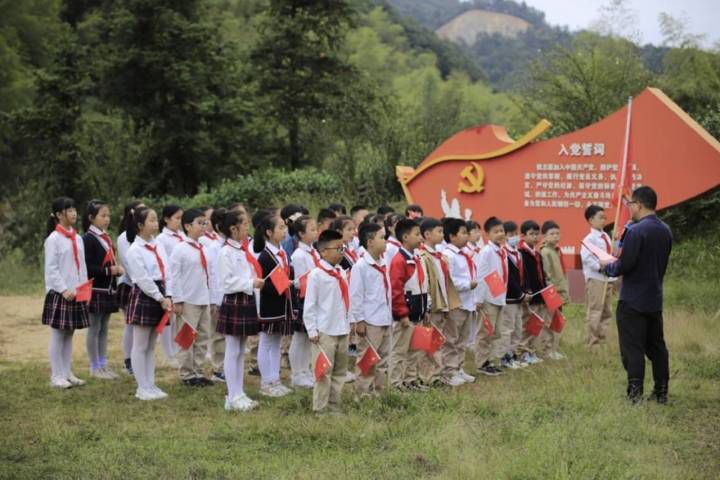 10月6日,天台小学四(2)班学生来到三州乡开展红色主题实践活动。“人民为先、祖国至上、诚实勇敢,自律自强……”同学们右手握拳举至耳边,左手拿着国旗置于胸前,在梅枝岭国防教育主题公园庄严宣誓。