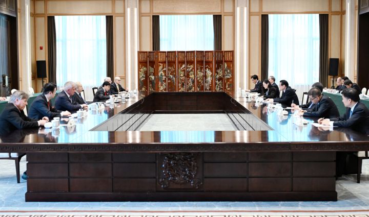 10月16日上午,省委书记、省人大常委会主任易炼红在杭州会见了出席中美知名人士论坛第五次会议的美方代表团。潮新闻记者 胡元勇 摄