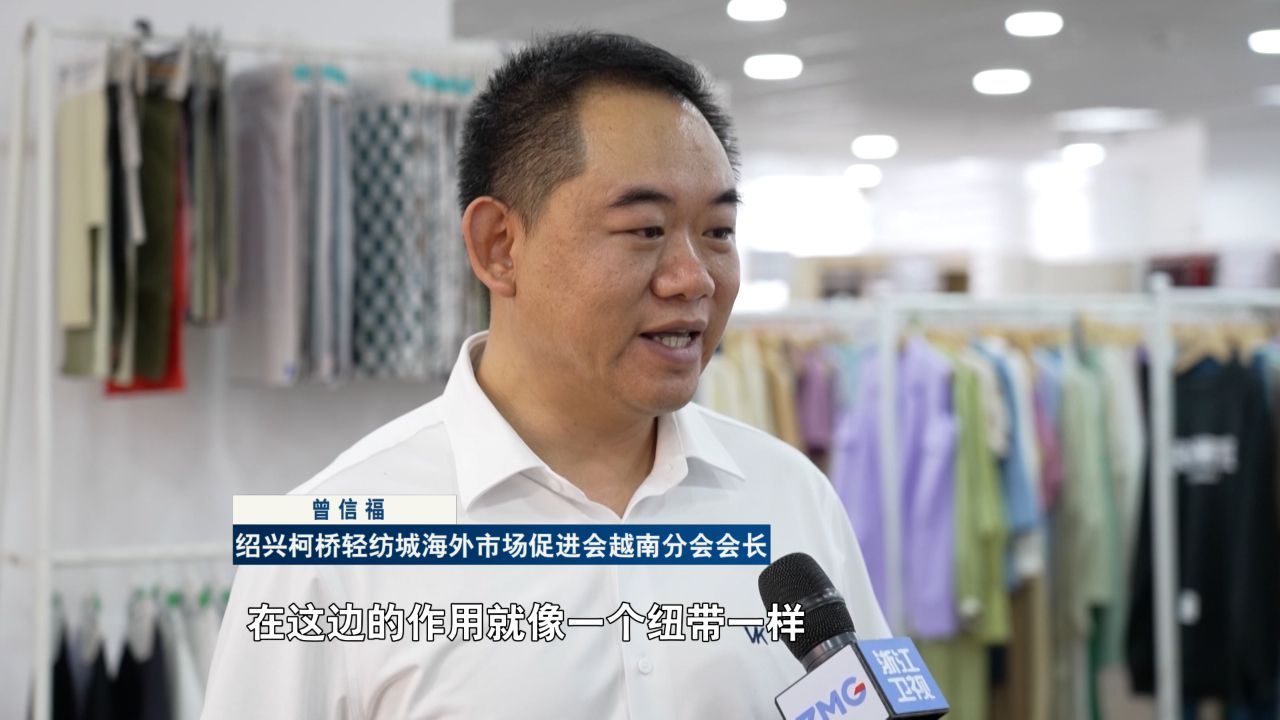 绍兴柯桥轻纺城海外市场促进会越南分会会长 曾信福:我们在这边的作用就像一个纽带一样,有一个比较专业的高效的团队在这边,帮助他们去节省时间,去避掉一些坑。