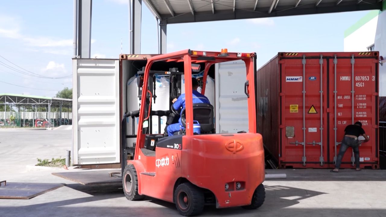 厂长虞万金每天都要靠着翻译软件,领着员工监测水质。尽管工厂新添置了3套净水设备,但依然不解决问题。为了应急,大家徒手搬了几十大桶饮用水,保障核心设备。
