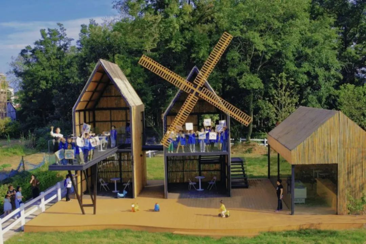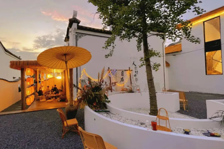“来这里上头。”新乡贤姜路接手了古村落5间民房,改造成了上头小酒馆、国风餐厅、自在小院等一系列新业态。在树立着“党员上岗,干部带头”的古树林里,一条游步道通向田野,小木屋、瞭望台……一个以露营、研学为主题的乡村文旅基地已经成型,为当下热门的露营活动和即将到来围炉煮茶季提供空间和条件。