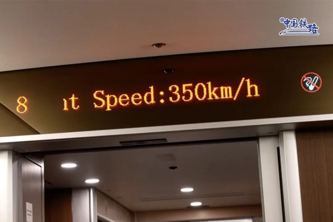 “286公里/小时、310公里/小时、351公里/小时……”列车显示屏上的数字不断跳动,逐渐升高到时速350公里。各个车厢里,欢笑声、拍照声此起彼伏,有人举起手机记录下这一瞬间,有人拿出硬币在小桌板上测试高铁平稳性,还有人通过新闻平台、社交媒体把视频和图片分享给更多人,兴奋之情溢于言表。