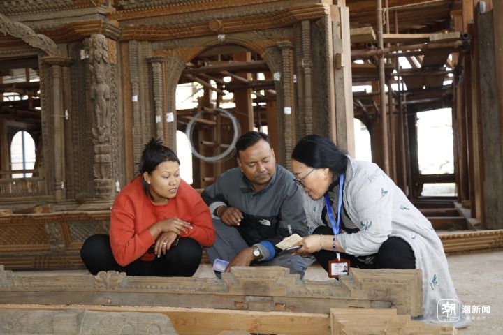 李志荣教授向潮新闻记者介绍,九层神庙的修复工作,我国文物修复“国家队”派出最顶尖的文物专家,还聘请一大批尼泊尔优秀工匠。难点在于,修复者需要尊重尼泊尔传统建筑工艺的基础上,把所有的构件根据尼泊尔传统工艺、测量数据进行复原。