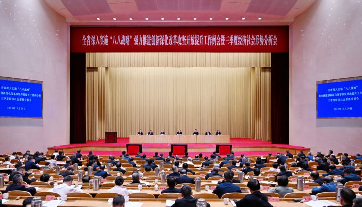 10月20日上午,省委书记易炼红主持召开全省深入实施“八八战略”强力推进创新深化改革攻坚开放提升工作例会暨三季度经济社会形势分析会。潮新闻记者 胡元勇 摄