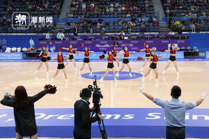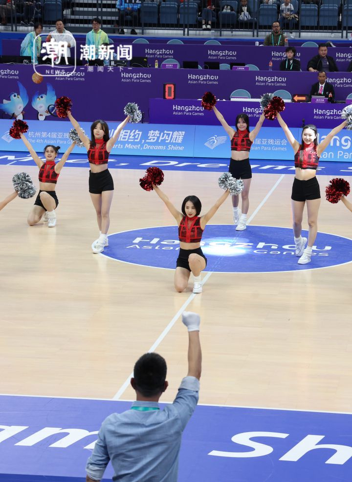 10月20日,杭州第4届亚残运会轮椅篮球赛场,比赛间隙激情热舞的啦啦队总是全场焦点。细心的观众发现,在姑娘们前面常会有一位同样在“手舞足蹈”的带队老师。据悉,在啦啦队里有几位听障的女队员,他们听不到声音,需要现场的手语指挥协助完成加油助威动作。
