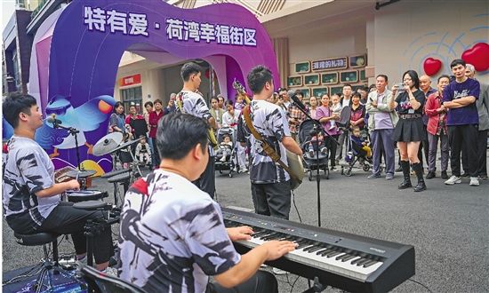 近日,“喜迎亚残运 盛会添光彩”杭州市欢聚亚残运会主题活动在杭州市上城区特有爱·荷湾幸福街区举行。图为“盲行天下”乐队展示视障人士的风采。 记者 董旭明 摄
