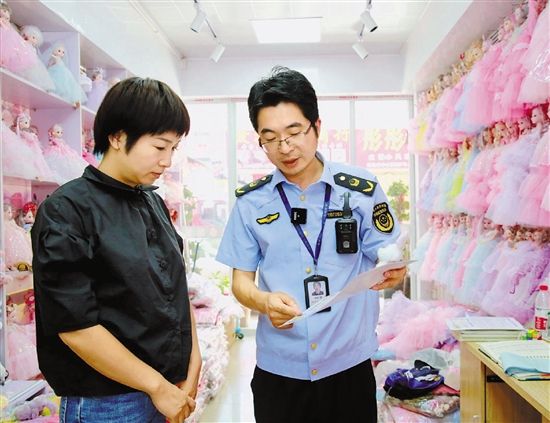 义乌市场监管局工作人员服务商户。 义乌市市场监管局 供图