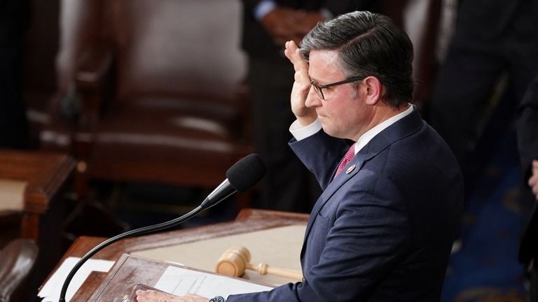当地时间25日下午,美共和党议员迈克·约翰逊当选众议院议长 图自美媒