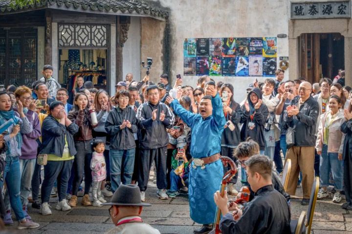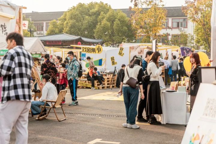 戏剧没有边界,走出西栅景区,北栅丝厂的“戏剧集市”也“火出圈”。这里有音乐、电影、舞蹈、阅读、展览、快闪、美食……是一场奇思妙想的文艺集会,为游客们提供了一方自由放松的休闲天地。