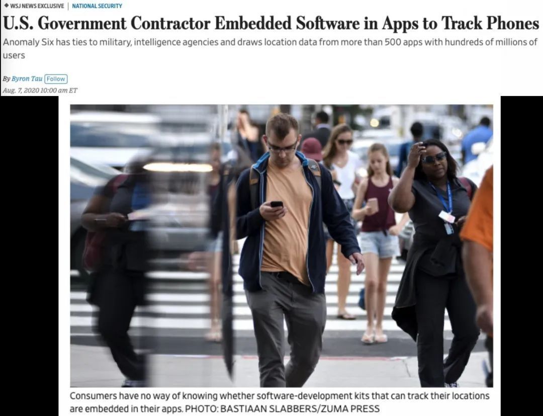 《华尔街日报》:美国政府承包商在多个手机APP中嵌入跟踪软件