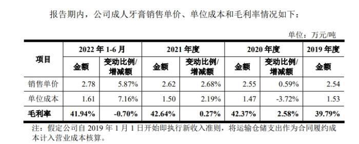 对此,登康口腔表示,公司紧抓消费升级趋势,顺应牙膏需求多样化、产品高端化的发展方向,在现有产品基础上不断进行研发升级,不断扩大自身在中高端成人牙膏中的市场份额,产品销售单价逐年上升。