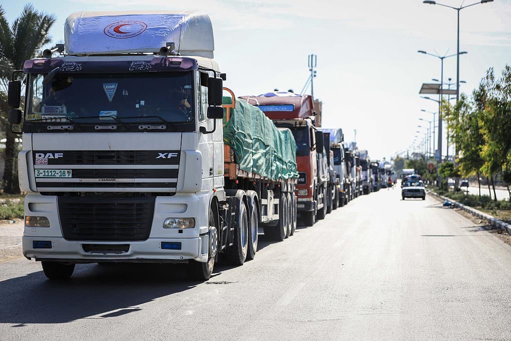 当地时间10月29日,据埃及开罗新闻频道报道,当天有47辆载有援助物资的卡车经拉法口岸进入加沙地带。