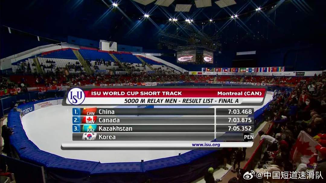 当地时间10月29日,在加拿大蒙特利尔举行的2023-2024赛季短道速滑世界杯第二站比赛中,由林孝埈、刘少林、刘少昂、孙龙组成的中国队发挥出色,力压加拿大队和哈萨克斯坦队,以7:03.468的成绩获得5000米男子接力金牌。