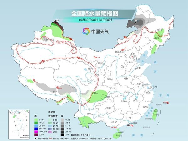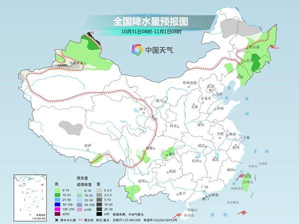 明天,新疆北部高海拔地区、内蒙古东北部、黑龙江西北部等地部分地区有小到中雪或雨夹雪,其中,新疆阿勒泰北部等地局部地区有大雪或暴雪。新疆北部、黑龙江中东部、吉林中东部、辽宁北部、台湾岛等地部分地区有小雨。