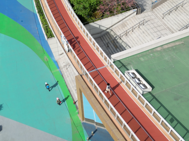 黄龙体育中心“空中环道”跑道全长1公里,供市民健身使用 图源:杭州发布