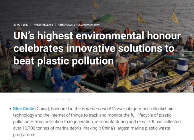 北京时间今天(30日)下午,联合国环境规划署在其总部肯尼亚首都内罗毕发布2023年联合国“地球卫士奖”。其中,由浙江省申报的“蓝色循环”海洋塑料废弃物治理模式,获得了这一联合国最高环保荣誉。