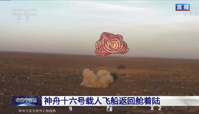 10月31日,神舟十六号载人飞船返回舱在东风着陆场成功着陆。太空出差5个月,博士乘组返回地球!欢迎回家!