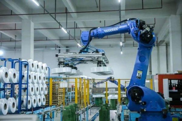 走进桐乡新凤鸣集团的5G工厂,各式各样的智能机器人出现在生产流水线中,传统工厂已悄然变身为未来工厂。纺丝车间内,纺织女工来回走动忙着查看的场景早已不见,取代的是一个个大眼睛智能巡检机器人,它能通过智能摄像头及时发现“飘丝”情况并上报,准确率很高。此外,还有承担取货工作的自动落筒机器人、提升搬运效率的智能移动车……在机器人助力下,该工厂年人均产量可达800吨,是行业平均水平的两倍。