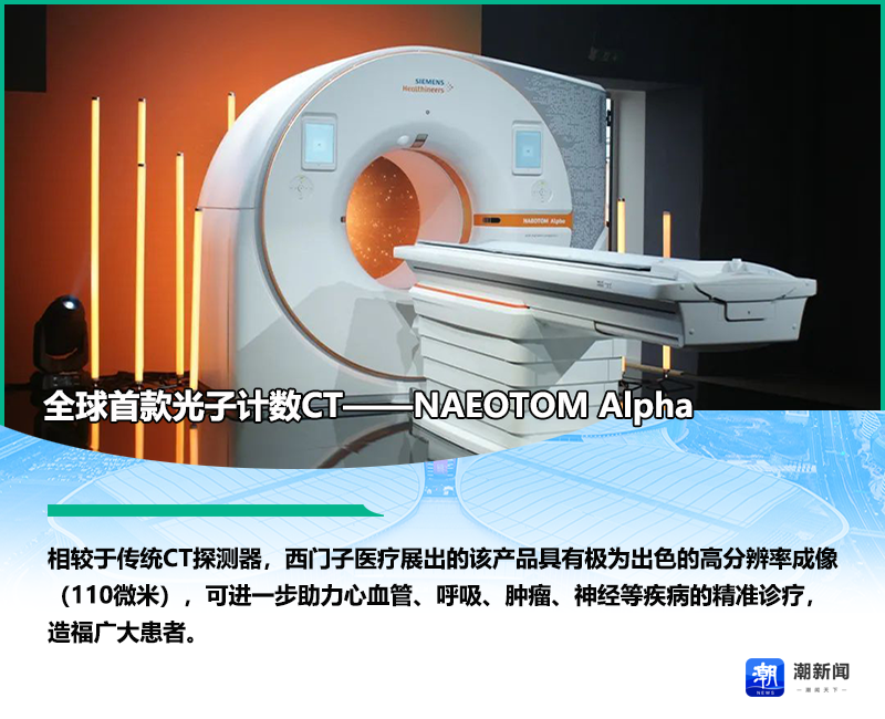 今年是西门子医疗第六次参加进博会,这次带来了全球首款光子计数CT——NAEOTOM Alpha。据悉,该展品是全球首款、也是目前唯一一款同时获得国家药品监督管理局NMPA认证、美国FDA和欧盟CE认证的光子计数CT。