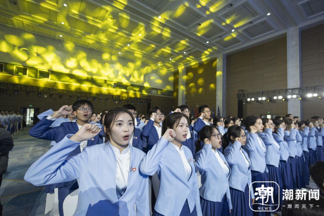 11月4日,嘉兴桐乡,2023年世界互联网大会乌镇峰会志愿者出征仪式上800余名“小梧桐”身着今年的志愿者新装亮相。 今年的峰会志愿者服饰围绕“融和共生,活力传承”主题来进行设计。本次设计融合了乌镇文化、互联网文化元素,向世界展示传统与现代融合,古韵与时尚共荣的文化特色,彰显“以和为美”的美学思想。 服装形制上结合了马面裙、立领旗袍等中国传统服饰特色,彰显中国传统服饰文化的魅力与传承;颜色上选用年轻化、互联网化的潮流色彩体现活力,融合中国传统水墨色彩彰显传承。 出征仪式结束后,“小梧桐”们立即开展通识培训并赴乌镇进行紧张的实训演练。