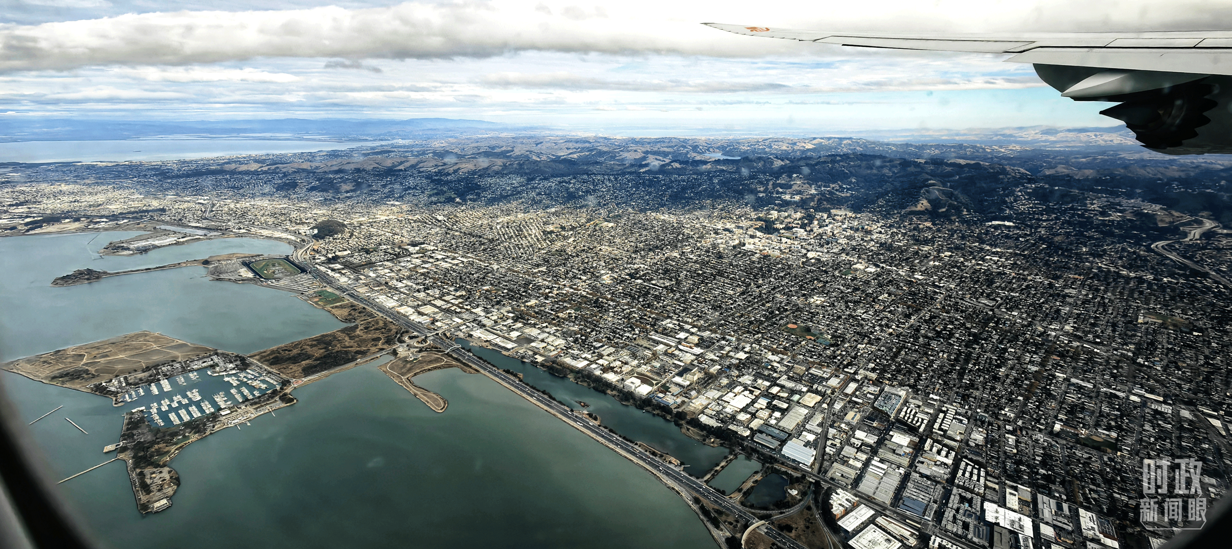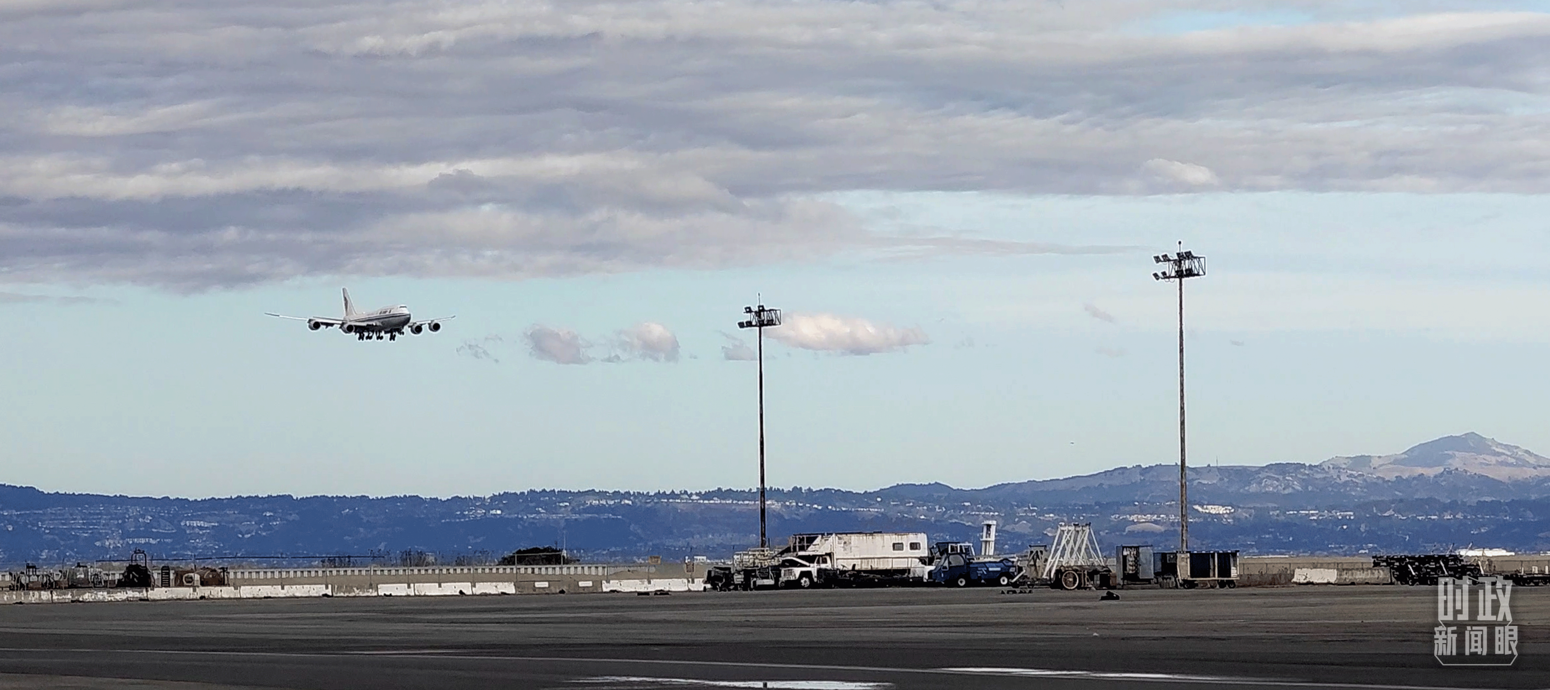 △习近平乘坐的专机即将降落旧金山国际机场。(总台央视记者张晓鹏拍摄)