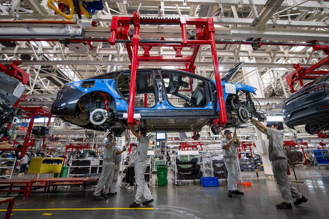 最近,金华市新能源汽车小镇零跑汽车智能工厂总装车间内一片忙碌。今年以来,该智能工厂生产订单不断,1至9月的新能源汽车累计交付量达88827台。拍友 胡肖飞 摄