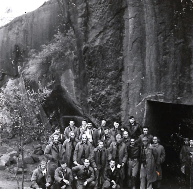 被营救的四个机组成员在衢州汪村衢州第十三航空总站防空洞前合影