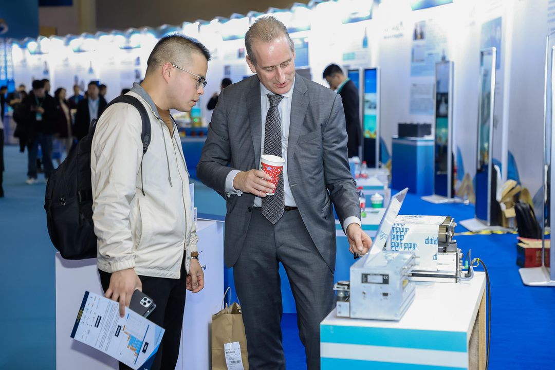 杭州外国人才创新成果展上,外籍人才正在介绍项目