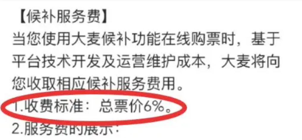 根据大麦票务平台发布的候补票须知,候补功能是指当演出门票售罄,且经主办方同意开启候补时,用户可选择预付全款,待该项目有新增库存时,系统将优先为候补订单进行匹配抢票。基于平台技术开发及运营维护成本,平台收取总票价6%的候补服务费。
