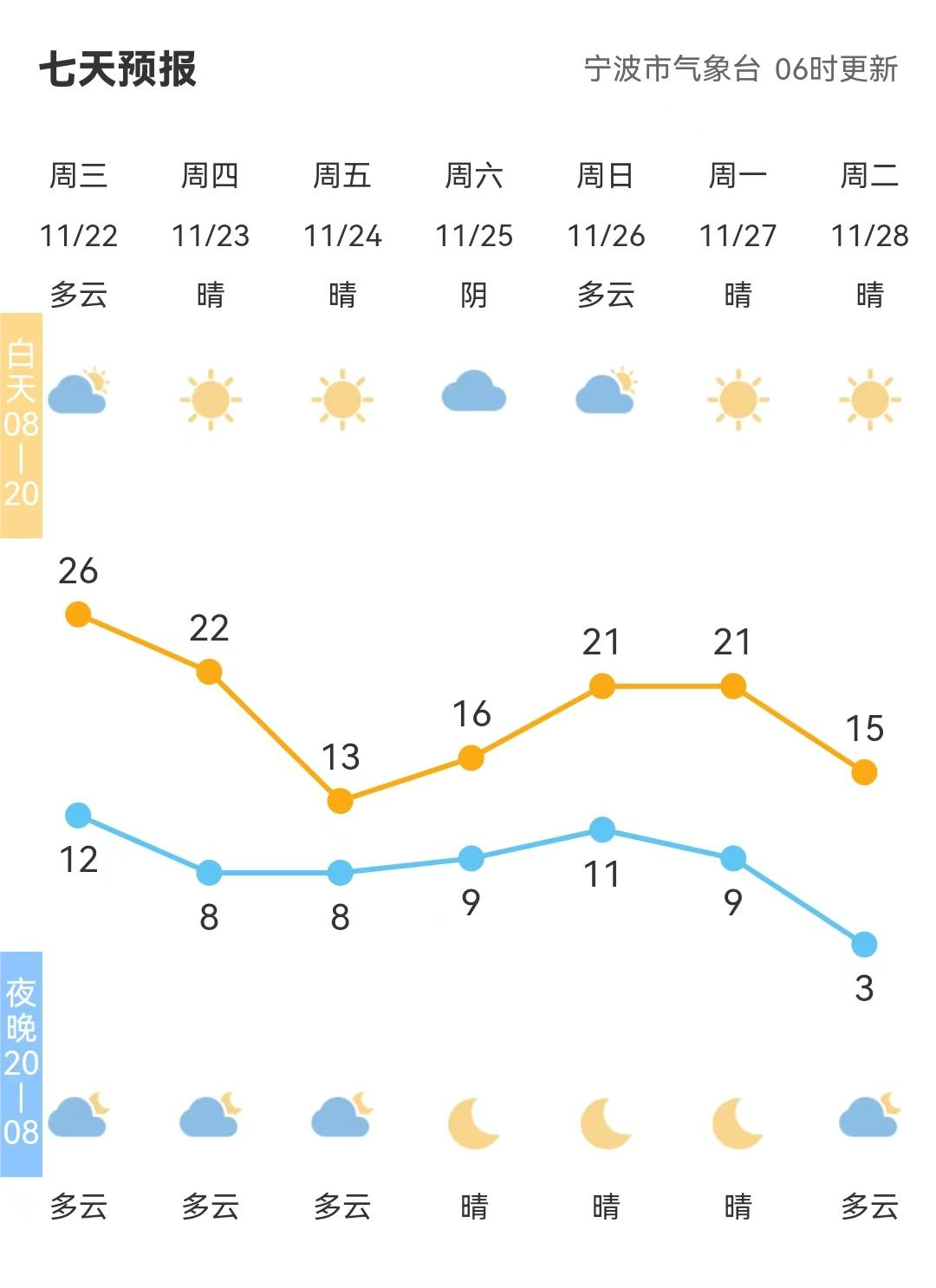 据宁波气象台预报,这个“小雪”节气,我们将享受“小阳春”,最高气温达到本轮回暖的最高点,预计在26℃上下。