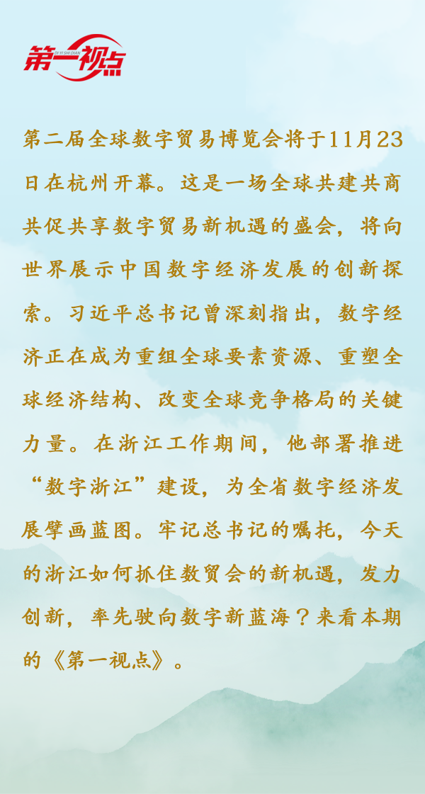 “我们紧紧围绕着总书记的要求开展了一系列的谋划,在本届数贸会上,我们将会发布浙江省的首批数字贸易示范区,我们在数字贸易的主体的推进、在项目的落地方面,正在采取一系列的措施。”第二届全球数字贸易博览会组委会执行副主任胡真舫介绍。