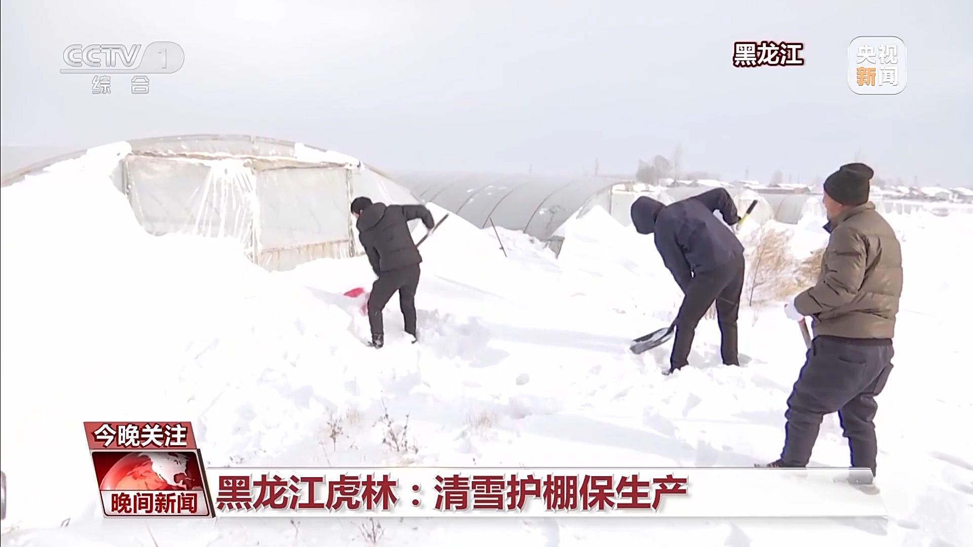 在黑龙江虎林市宝东镇太兴村,暴雪让村里85栋育秧大棚积雪,当地迅速组织人力,抓紧对大棚区进行积雪清理,有效防止大棚被积雪压塌。