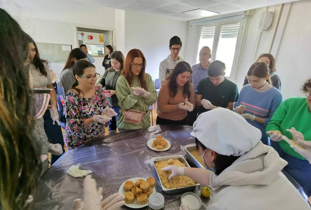 2023年9月29日,乌拉圭共和国大学孔子学院师生一起做月饼,欢度中秋节。