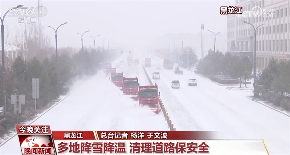 11月22日,黑龙江省多地发布寒潮、降雪、大风天气预警。截至23日8时,绥化市最大降雪量为15.7毫米,最大积雪深度达32厘米,当地出动多台大型清雪车辆,清理道路积雪。