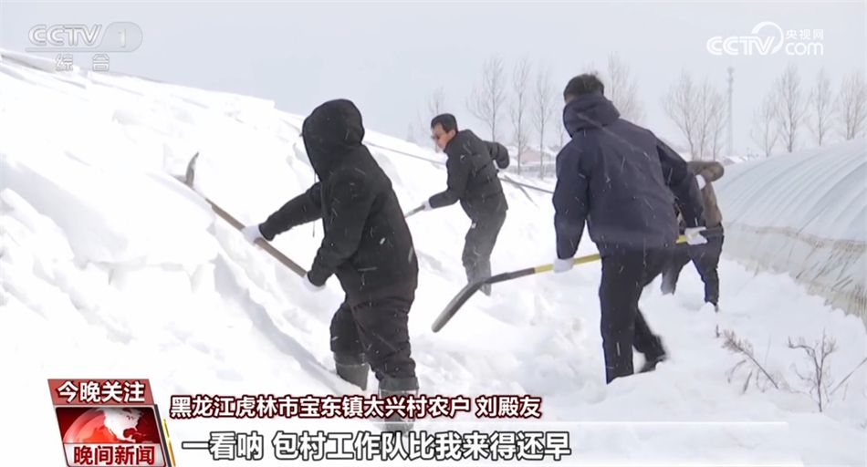 黑龙江虎林市宝东镇太兴村农户 刘殿友:昨天晚上下了一宿雪,今早起来,对大棚我真不放心,到大棚想清清雪,一看,包村工作队比我来得还早,帮我清完雪了,我这心里老踏实了。
