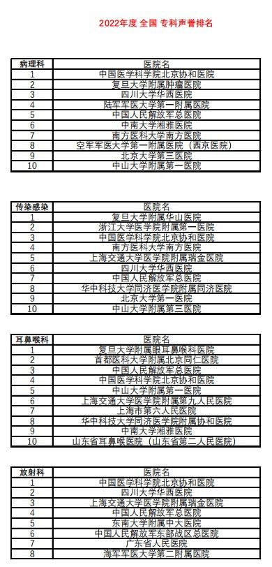 中国医学科学院北京协和医院、四川大学华西医院、中国人民解放军总医院、上海交通大学医学院附属瑞金医院和复旦大学附属中山医院位列《2022年度中国医院综合排行榜》前五名。